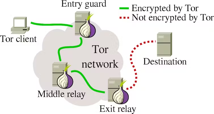 The Tor network provides anonymity by encrypting and randomly bouncing communications through a network of relays run by volunteers around the globe.